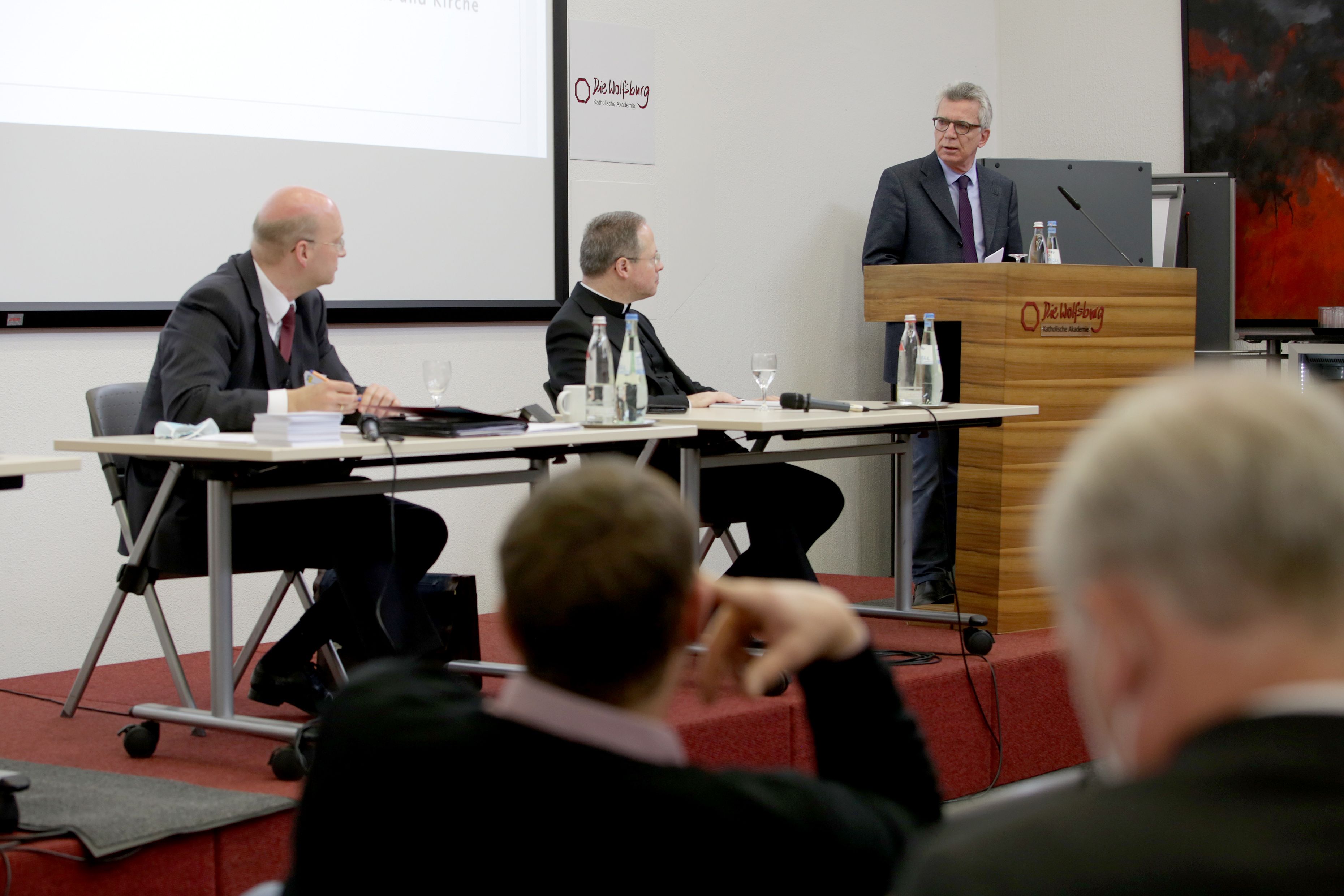 De Maizière hielt den Abschlussvortrag bei der renommierten Fachtagung, bei der rund 120 Expertinnen und Experten aus Wissenschaft, Politik, Kirche und Verwaltung zwei Tage lang unter dem Titel Ablösung der Staatsleistungen – Gefahr oder Chance für das Verhältnis von Staat und Kirche? diskutiert hatten. Geleitet wird die von der Wolfsburg veranstaltete Tagung seit 2018 vom Leipziger Staats- und Verfassungsrechts-Professor Arnd Uhle.