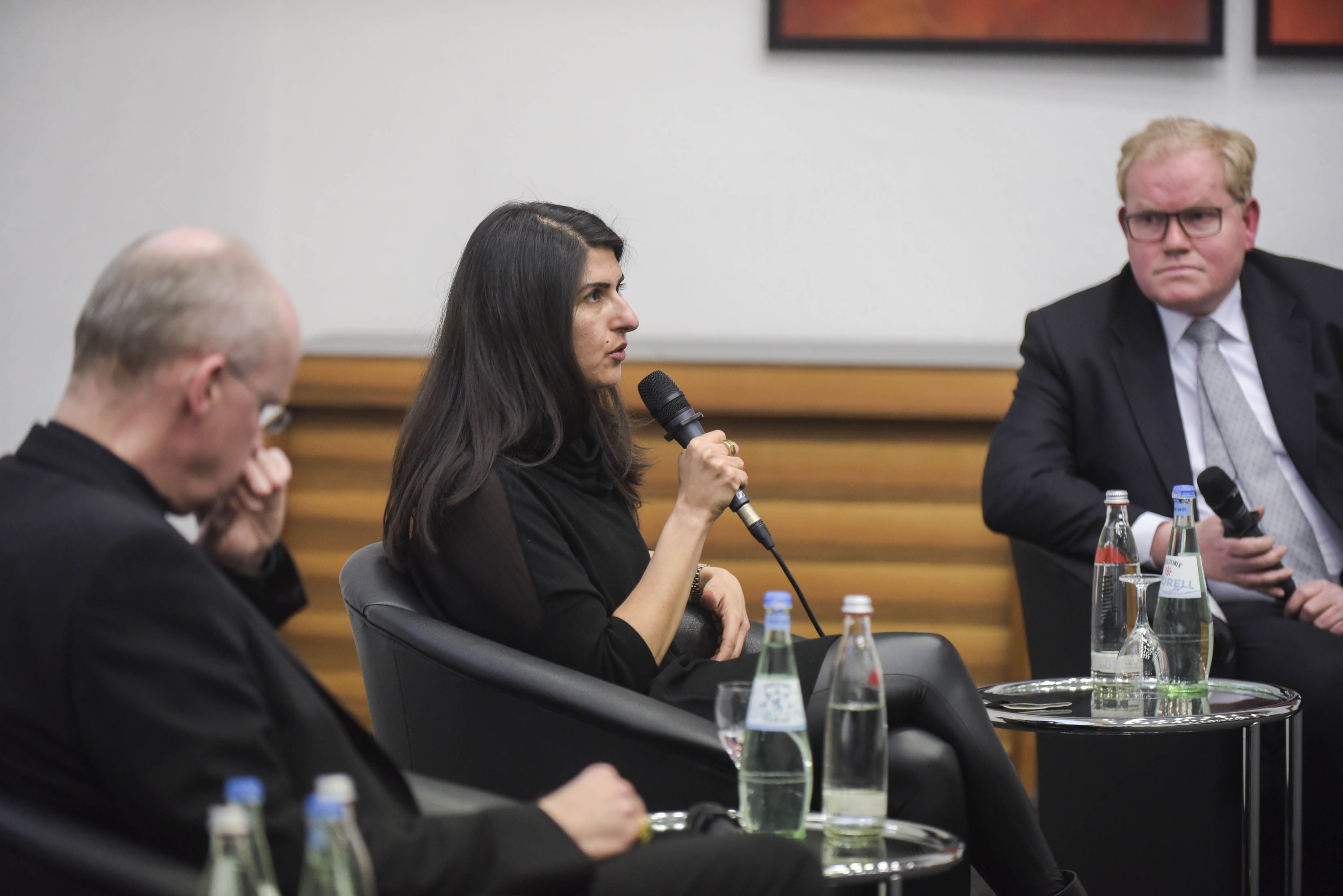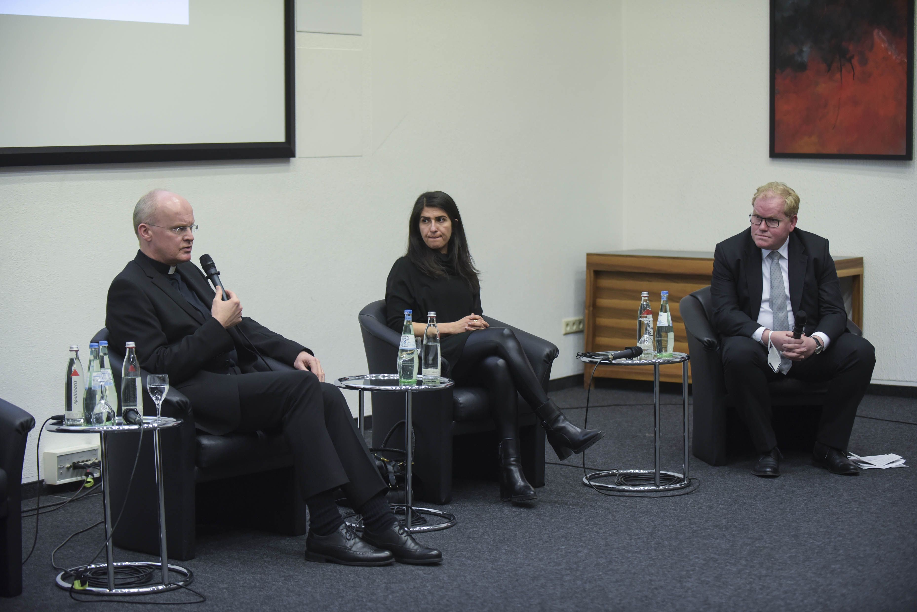 Aus aktuellem Anlass hatte die Wolfsburg der für Dienstagabend geplanten Veranstaltung „Verletzlich, aber unverzichtbar – Was ist uns die Familie wert?“ aus der Reihe Dialoge mit dem Bischof einen Brennpunkt Ukraine vorangestellt. Im Gespräch mit Peter Güllmann, dem Sprecher der BIB – Bank im Bistum Essen, die mit der Wolfsburg die Dialoge mit dem Bischof verantwortet, diskutierten Overbeck und die CDU-Bundestagsabgeordnete Serap Güler über den Krieg Russlands gegen die Ukraine. Güler gehört dem Verteidigungsausschuss des Bundestages an.