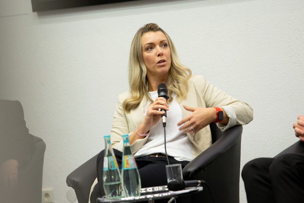 Unter dem Titel Digitaler und innovativer! Die Zukunft der Arbeit im Ruhrgebiet diskutierte Overbeck mit der Geschäftsführerin der Business Metropole Ruhr, Julia Frohne, mit Francesco Grioli, Mitglied des geschäftsführenden Hauptvorstandes der Industriegewerkschaft Bergbau, Chemie und Energie (IG BCE), mit dem ehemaligen Präsidenten des Instituts Arbeit und Technik im Wissenschaftszentrum NRW, Franz Lehner, und mit Michelle Kwyas vom Mentoring-Programm des Jungen Initiativkreises Ruhr. IR-Geschäftsführerin Anette Bickmeyer fehlte kurzfristig auf dem Podium. Neben den von Wolfsburg-Dozent Mark Radtke moderierten Wortbeiträgen gab es immer wieder interaktive Umfrageelemente, die Anna Steinmeier, Projektmanagerin des Jungen Initiativkreises Ruhr, in die Debatte einbrachte.