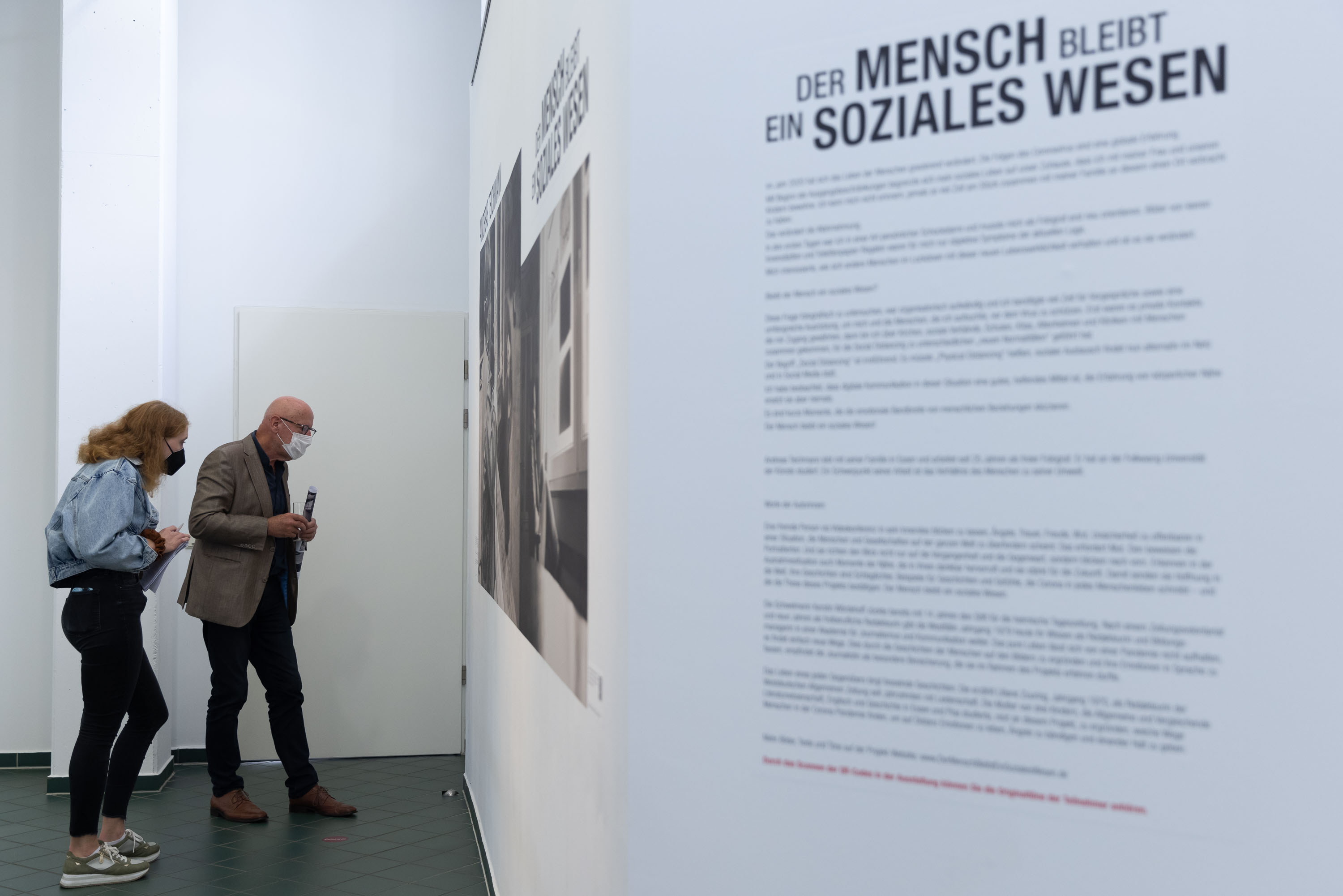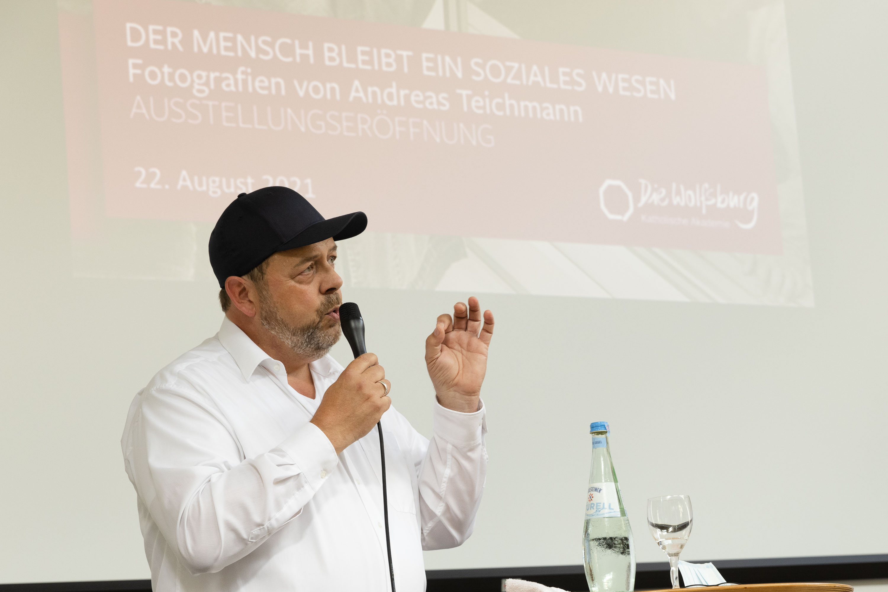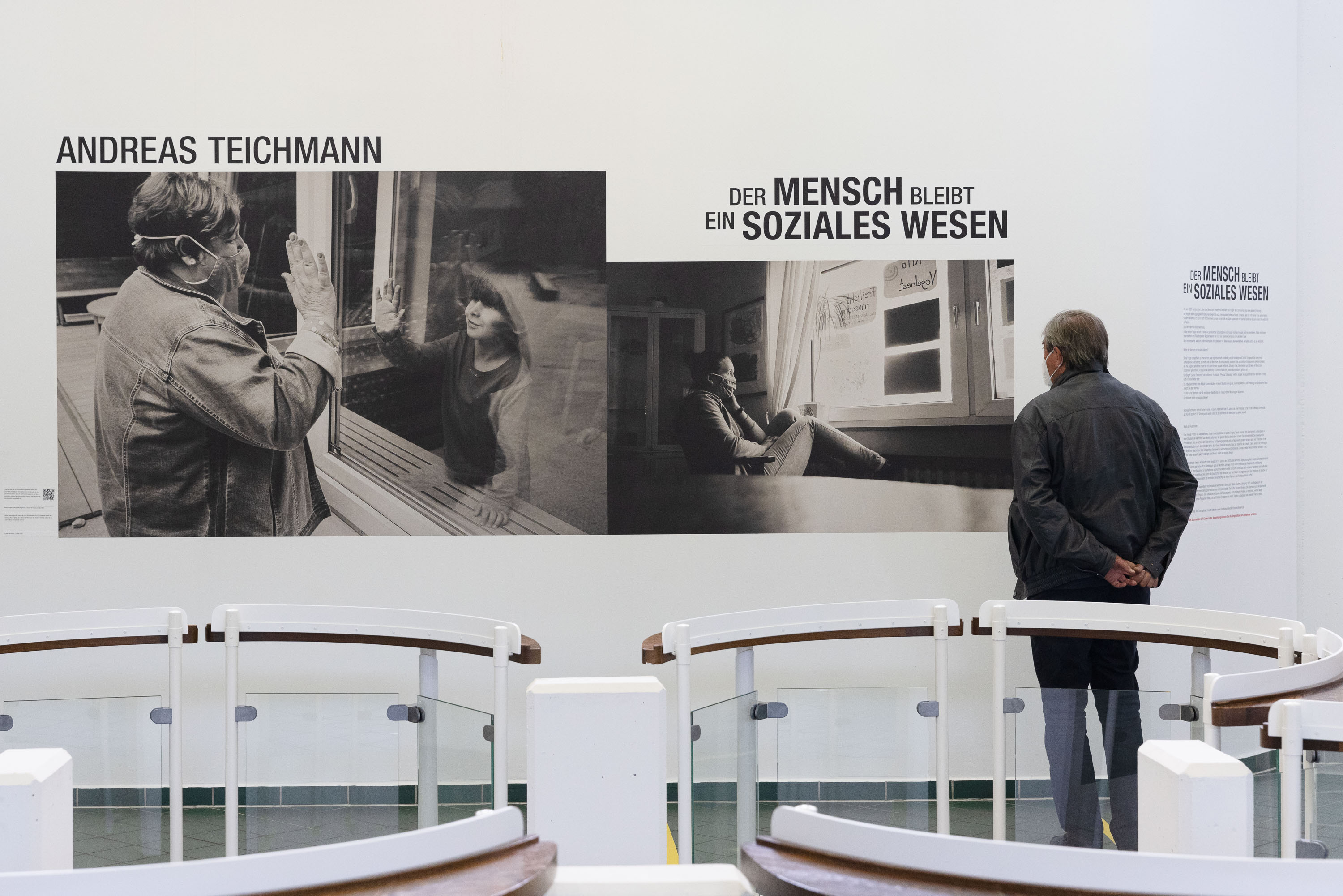 Die katholische Akademie Die Wolfsburg zeigt in Kooperation mit der BIB – Bank im Bistum Essen die multimediale Ausstellung „Der Mensch bleibt ein soziales Wesen“ des Essener Fotografen Andreas Teichmann und der Autorinnen Kerstin Wördehoff und Liliane Zuuring. In der bis zum 31. Januar 2022 geplanten Schau an zwei Orten sind in der Wolfsburg in Mülheim 27 Motive ausgestellt, in der BIB – Bank im Bistum Essen sind es 14 Motive.