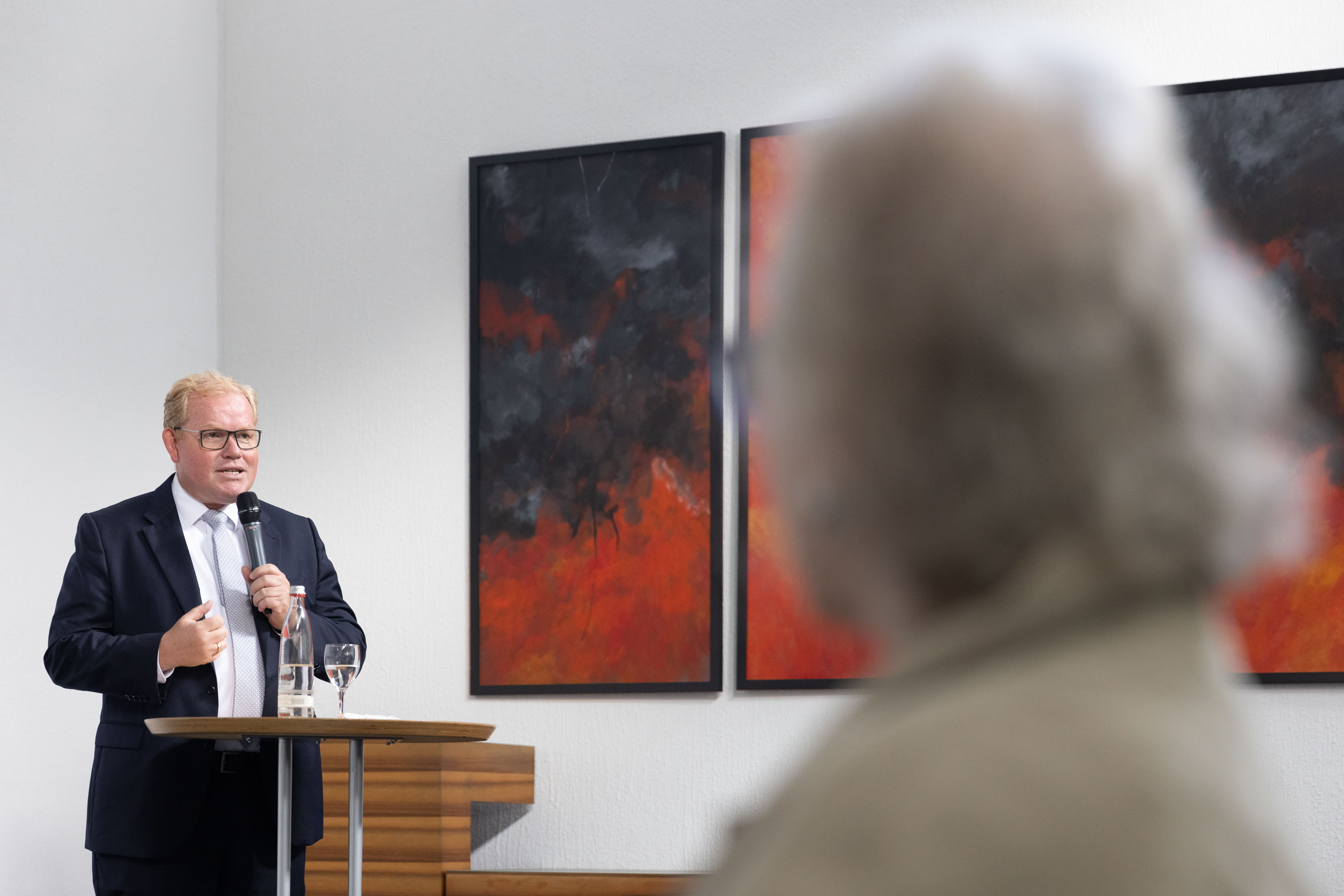 In der Wolfsburg waren aufgrund der aktuell geltenden Corona-Schutzverordnung zur Vernissage wieder mehr Gäste erlaubt. „Dass so viele Menschen zur Eröffnung dieser besonderen Ausstellung in die Wolfsburg gekommen sind und auch kommen durften, erfreut mich sehr“, sagte Akademiedirektorin Judith Wolf. „Die Ausstellung ist programmatisch für viele Veranstaltungen der Wolfsburg im kommenden Halbjahr, die die Folgen der Corona-Pandemie reflektieren werden.“