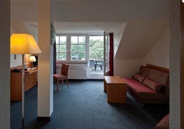 Unsere Zimmer verfügen über ein modernes Ambiente zum Wohlfühlen und Erholen. Bei 70 Gästezimmern haben Sie die Auswahl zwischen Einzel-, Doppelzimmer und Appartement. Die Appartements sind mit Fernseher ausgestattet und bieten Ihnen z.T. einen Ausblick von der Terrasse bis zum Duisburger Hafen. Alle Zimmer verfügen über ein separates Bad und Dusche. Jedes Bad ist mit einem Fön ausgestattet. In jedem Zimmer befindet sich ein originales Kunstwerk. Ein kostenloser WLAN-Zugang steht in den Gästezimmern zur Verfügung.