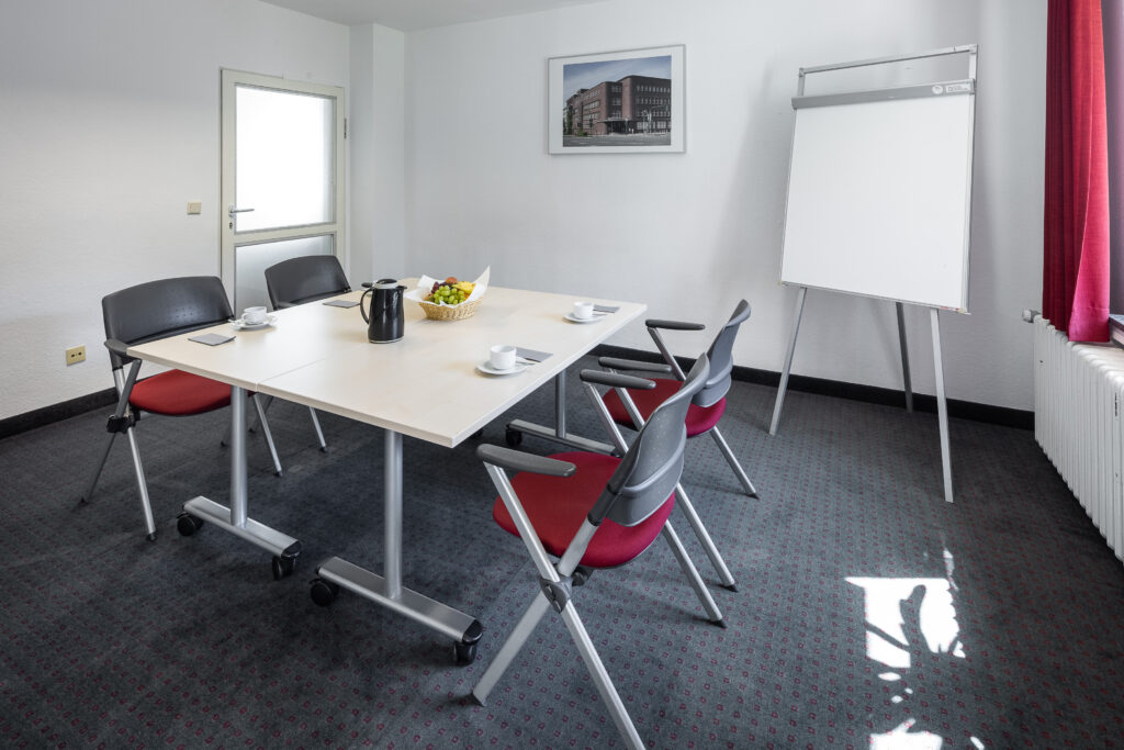Tageslicht, abdunkelbar, Stühle, Teppichboden, Pinnwand, Flipchart inkl. Papier