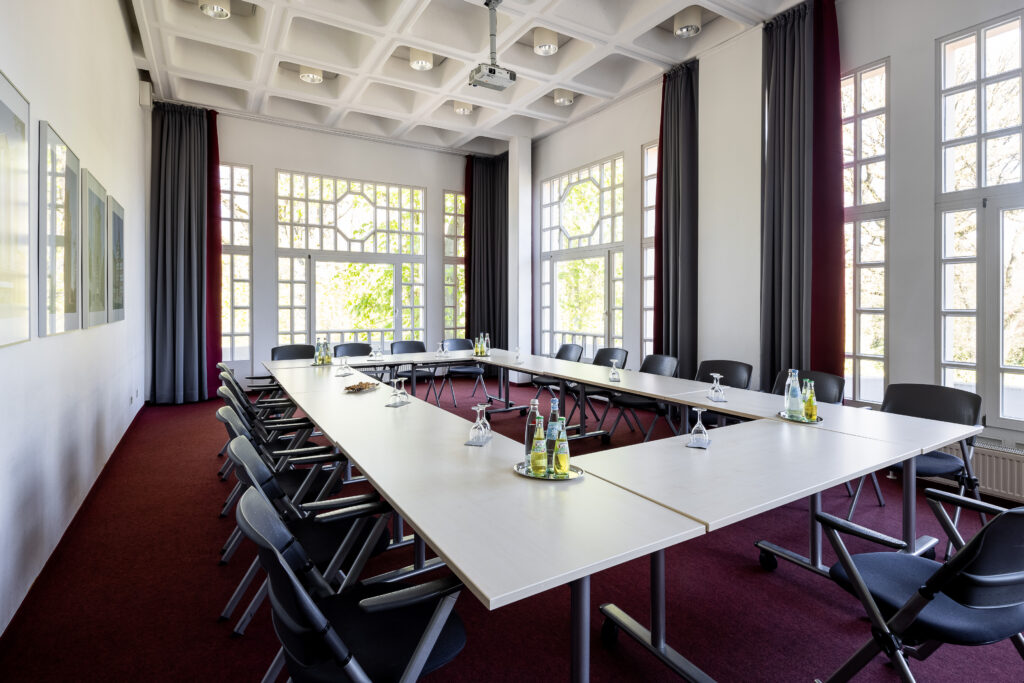 Der lichtdurchflutete, helle Raum mit Panoramablick bietet für 22 Personen Tagungsmöglichkeiten und ist 50 m² groß.